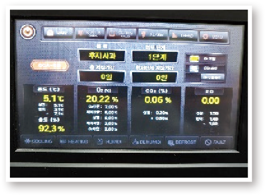 농촌진흥청 국립농업과학원은 2016년, 기체 농도를 설정 범위 내에서 자동으로 제어하는 1세대 CA 저장고를 자체 개발했다. 이후 농산물의 생리 상태를 호흡률로 자동 감지해 기체 환경을 능동적으로 제어하는 2세대 ‘능동형 CA 저장고’를 개발하며 기술을 고도화했다. 저장고는 0.01% 단위까지 정밀하게 측정하는 산소와 이산화탄소 감지기(센서)를 활용해 농산물 호흡률을 계산한다. 이를 통해 농산물 생리 상태를 판단한 후 산소 농도 설정값을 자동으로 변경해 변경된 설정값에 따라 기체 농도를 조절한다. 산소 농도는 1~5%, 이산화탄소는 1~10% 범위에서 배추 호흡률 변화에 따라 자동으로 조절된다. 이 저장고를 현장에 적용한 결과 겨울배추는 저장 기간이 3개월에서 5개월로, 봄배추는 1.5개월에서 3개월로 연장되는 성과를 거뒀다.