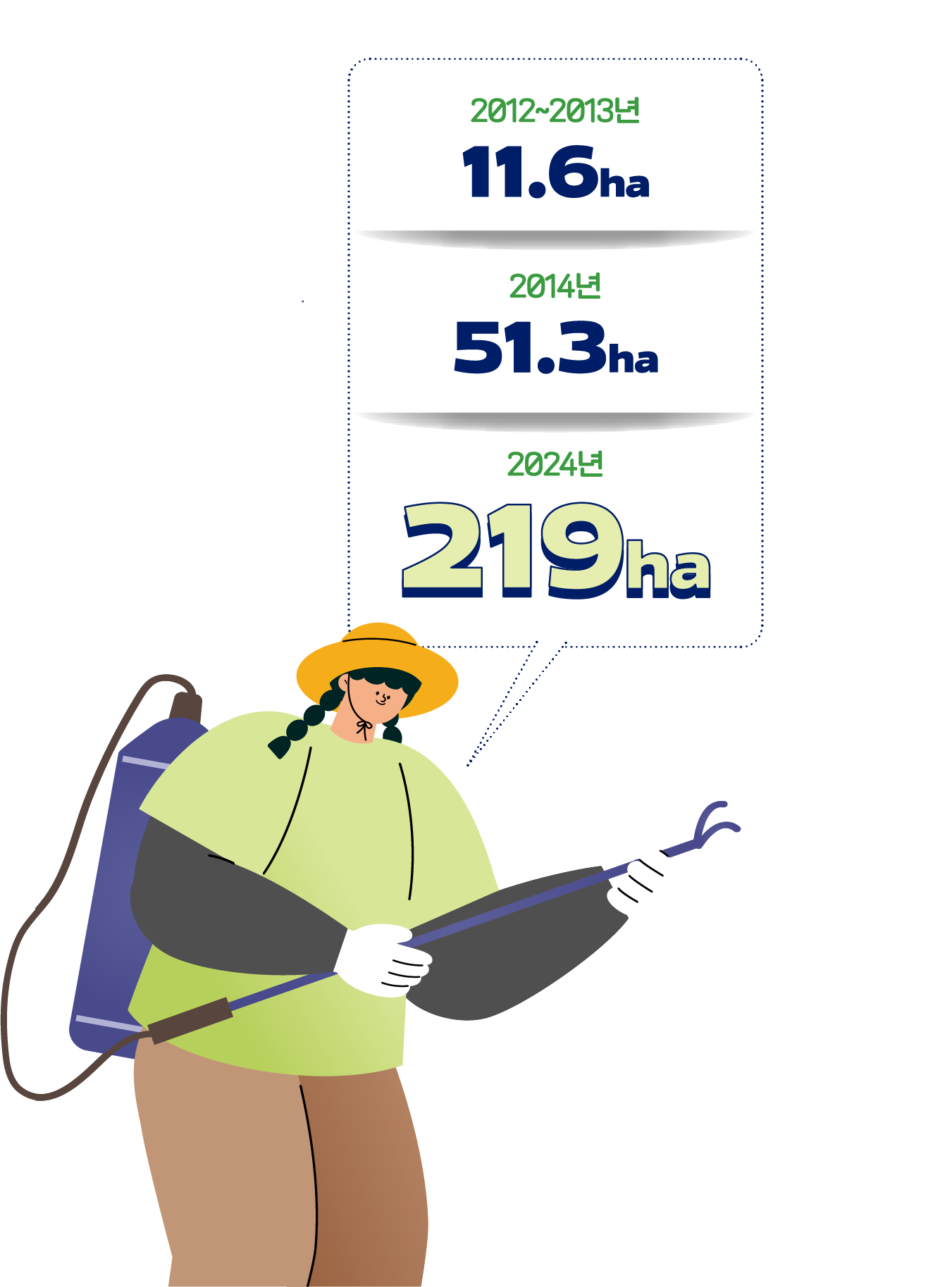 배추 농업 현장에서 가장 큰 골칫거리는 2011년 강원도 태백에서 국내 최초로 발생한 ‘사탕무씨스트선충’이다. 이후 씨스트선충의 감염이 확산되면서, 배추 생육이 저하되고 배춧속이 차지 않는 결구 불량 현상이 나타나 여름철 상품성 있는 배추 생산에 큰 어려움을 겪어 왔다. 특히 씨스트선충은 국가가 관리하는 검역 병해충으로, 공적 방제 대상에 해당한다. 2024년 방제 면적은 10년 전보다 약 4배 증가한 219헥타르에 달했을 정도로, 그 확산세가 매우 심각했다.