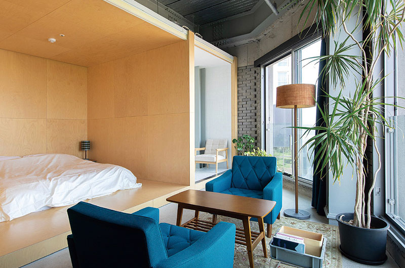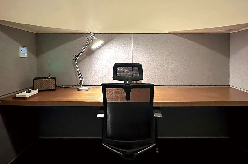 낮에는 집중해서 일할 수 있고, 밤에는 방문객들과 교류할 수 있는 라운지와 다양한 업무 스타일에 맞춘 공유 오피스를 갖추고 있다. 작업에 편리한 다인용 긴 테이블이 마련되어 있고, 옆쪽에는 업무 집중력을 높여주는 1인석이 듀얼 모니터와 함께 준비돼 있어 효율적인 업무 환경을 제공한다. 한쪽 벽면에는 비즈니스와 성장에 관한 도서들이 비치돼 있어, 틈틈이 영감을 얻기에도 좋다. 라운지에는 커피와 티가 상시 제공되며, 회의실과 복합기 등 각종 업무 인프라도 충실히 갖춰져 있다. 밤에는 조명 세팅을 조절해 조용히 생각을 정리하거나, 여행의 여유를 만끽할 수 있는 분위기로 바뀐다. 숙소는 싱글룸, 더블룸, 트윈룸 구성이 마련돼 있어 혼자 머물기에도, 함께 머물기에도 적합하다.