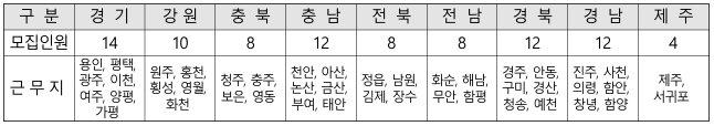 ❍ 모집인원 및 근무지 : 88명, 44개 시군농업기술센터(시군당 2명 내외)