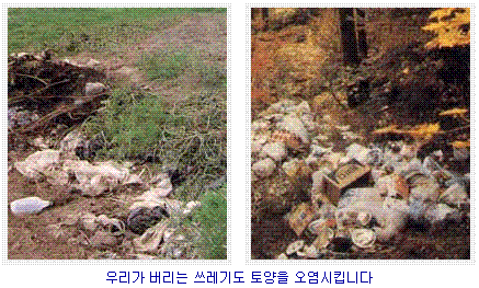우리가 생각 없이 버린 쓰레기들로 인하여 아름다운 꽃이나 귀여운 다람쥐들도 사는 곳을 잃게 되고, 꽃이나 다람쥐뿐만이 아닌 우리 사람들의 휴식공간과 생활터전도 마찬가지로 잃게 되는것이지요.